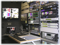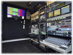 As well as a good selection of video processing equipment, it has a 5-input vision mixer, 16-input audio mixer, plus UHF radio talkback for cameras and IFB.
